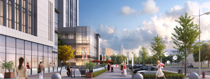 項目位于甘肅省蘭州市安寧核心商務區(qū),項目西側(cè)為莫高大道,南側(cè)緊鄰福興路及地鐵二號線崔家莊站(規(guī)劃中),東臨桃林路,北臨藍科路,項目臨近安寧劉家堡廣場公交調(diào)度站等公共設施配套,交通迅捷,緊鄰城市快速干道,通達全城。