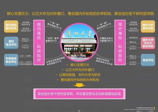 甘肅省委副書(shū)記、省長(zhǎng)唐仁健在蘭州大學(xué)榆中校區(qū)調(diào)研時(shí)指出:“蘭州大學(xué)立足學(xué)校和地方發(fā)展,提出在榆中盆地建設(shè)生態(tài)創(chuàng)新城的構(gòu)想,體現(xiàn)了各方共識(shí),與省里構(gòu)建綠色生態(tài)產(chǎn)業(yè)體系、推動(dòng)綠色發(fā)展崛起大戰(zhàn)略高度契合,與蘭州市城市副中心建設(shè)高度契合,可謂正當(dāng)其時(shí)、水到渠成!